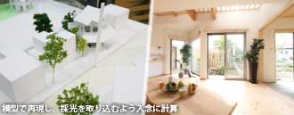 健康的な住まいづくりには日光は欠かせません。都市型の厳しい環境下では、プライバシーと窓(開口部)という2つの矛盾する要素にどう折り合いをつけ、快適な住まいが実現できるかを常に考え、自然の光と風を取り込み季節を肌で感じることができる住まいの提案を行なっています。