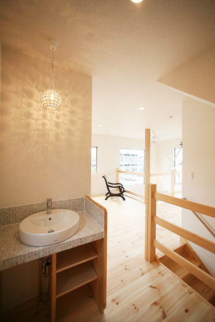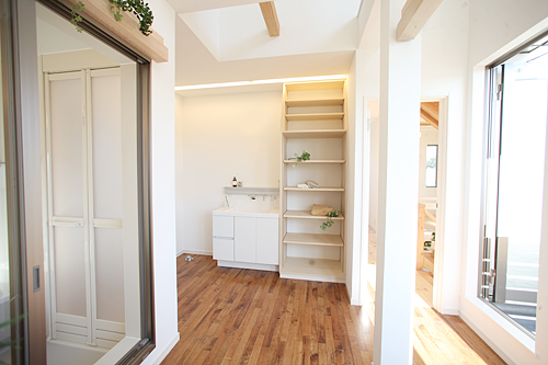 注文住宅ならではのそれぞれ家族の暮らしを考えた使い勝手のいい動線の洗面室。ご参考に。