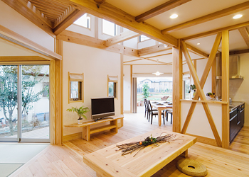 木造軸組工法は、他に比べて建築部材となる木材の製造や輸送、建設時などの消費エネルギーが最も少ない工法です。例えば、鉄やコンクリート製品はその生産過程で、地球温暖化の原因となる二酸化炭素や酸性雨の原因となる二酸化硫黄を多く排出し、しかも大量の燃料と水を消費します。これに対して木材は伐採して製材するだけで建材として使用できます。燃料消費も少なく、現場で使う重機なども必要最低限で済みます。石油や電気など無かった時代から手づくりで建てられてきた木の家ならだはの特長です。