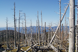 化石燃料の燃焼によって、硫黄酸化物や窒素酸化物などの酸性物質が生じます。排気ガス、 工場の煙突などから空高く大気中に放出された酸性物質は決して無くならず、再び硫酸や硝酸などに姿を変え、 雨に混じり酸性雨となって降り注ぎ、大地や湖沼を汚しています。