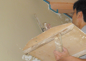 珪藻土とは、太古の時代に生息していた海や湖の藻類が堆積して土になったものです。目に見えない小さな穴が沢山あいていて、空気中の水分を吸収・発散させる優れた機能を持っています。内装仕上げ材として過湿になりがちな所で特に大きな効果があります。