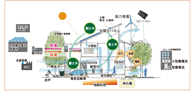 スマートハウスとは直訳すると、賢い家。エネルギーを効率的に利用するため家庭内のエネルギー機器や家電などをネットワーク化し、エネルギーの消費を最適に制御した住宅を「スマートハウス」と言います。東日本大震災後の電力不足をきっかけに需要が高まっており、ハウスメーカー各社もスマートハウス事業を相次いで強化しています。