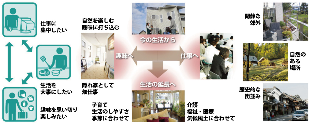 新たに家を作ることは人生のバリエーションを増やすことができます。新しい家で趣味や仕事に没頭したり、生活の場を広げたり、ひっそりと楽しむ小さな家や、大自然に囲まれた客人を度々呼べるような大きい家でも構いません。新しい家までの距離や、使用用途、移動距離、建築規模等は人によって異なり、多様化するライフスタイルの数だけ、住まう人の夢見る数だけ、新しい家のカタチは無限にあります。型にはまったものはなく、別荘やセカンドハウスなど、呼び方にこだわりもありません。富裕層のステータスとなるような金銭面の敷居もなく、年齢も問いません。人生のバリエーションを増やすということは自由で誰にでも出来る挑戦です。