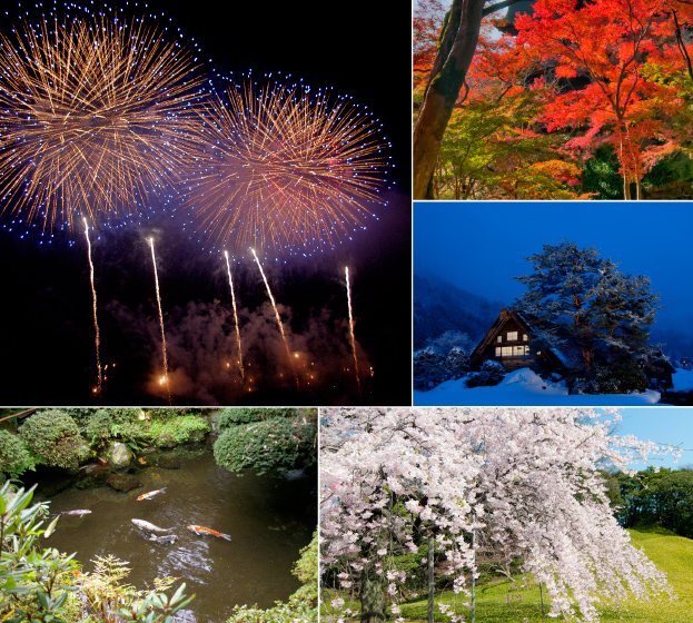 春の花見や夏の納涼、秋の紅葉見物に冬の雪見と、四季それぞれの行楽見物は日本人に欠かせない最も手軽な余暇の過ごし方でした。この自然の風情や景観を日常の生活に取り込み、生活空間の周辺を人工的自然で飾る手法が庭造りでした。